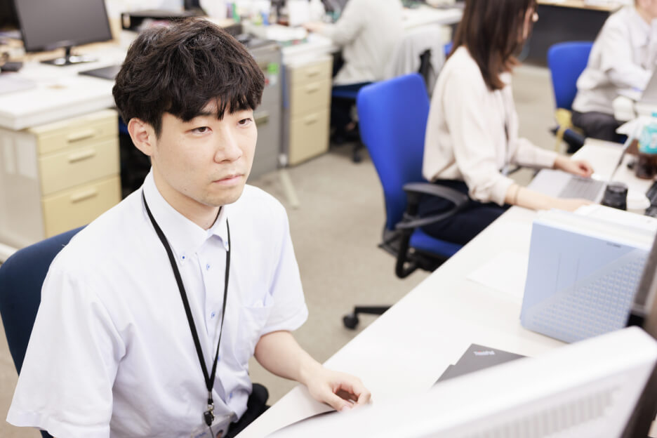 入社前、SEの仕事は黙々と作業する個人プレーが多いイメージでした。実際、システム開発部では個人個人で自分のPCに向かって1人で作業している時間も長いですが、思っていたよりチームプレーが多く、かつ重要でした。細かい要件の確認や、互いの進捗の確認など、コミュニケーションをうまくとりながらチームでプロジェクトを進めていくという意識を持つ必要があると感じています。